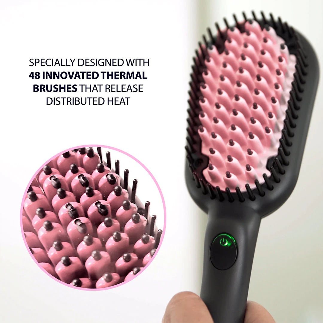 ¡Pétale es el alisador que toda mujer debe tener! Su tecnología cerámica cuida de tu cabello de la raíz a las puntas, sin resacarlo ni dañarlo, y al mismo tiempo consigue resultados profesionales. Consiga un lacio perfecto y duradero todos los días con Pétale. Tres minutos son suficientes para alisar hasta los rizos más rebeldes, domar el encrespamiento y dejar tu melena suave, perfecta, y llena de brillo.Pétale hace que el cabello libere millones de iones negativos, lo que genera un aspecto suave y sedoso. Usarlo es tan fácil como cepillarse el pelo. ¡Hasta 10 veces más rápido que en la peluquería! Modos de uso:Temperatura mínima: Cuando el botón está iluminado en color azul, Pétale está en su temperatura ideal para cabello seco y/o finoTemperatura media: Cuando el interruptor está iluminado en color verde, Pétale está en su temperatura media, ideal para cabellos normales.Temperatura máxima: Cuando el interruptor está iluminado en color rojo, Pétale está a la máxima temperatura, para usarlo en los cabellos más rebeldes y/o gruesos. Características: El peine alisador PETALE es un cepillo alisador eléctrico que utiliza tecnología cerámica para cuidar el cabello de la raíz a las puntas sin resecarlo ni dañarlo. Además, libera millones de iones negativos para generar un aspecto suave y sedoso en el cabello.Ventajas: El peine alisador PETALE reduce el tiempo de alisado hasta en 10 veces, es perfecto para el uso diario y funciona en todo tipo de cabello. Además, el alisado del cabello con PETALE es más duradero y autorregula su temperatura para ofrecer en cada momento los mejores resultados.Beneficios: Los beneficios del peine alisador PETALE incluyen la capacidad de conseguir un lacio perfecto y duradero todos los días en solo tres minutos, incluso en los rizos más rebeldes. También permite domar el encrespamiento y dejar el cabello suave, perfecto y lleno de brillo. Además, su uso es tan fácil como cepillarse el pelo y es hasta 10 veces más rápido que en la peluquería. Ventajas de PétaleReduce el tiempo de alisado hasta en 10 veces.Perfecto para el uso diario.Funciona en todo tipo de cabello.El alisado del cabello con Pétale es más duradero.Pétale autorregula su temperatura para ofrecer en cada momento los mejores resultados.