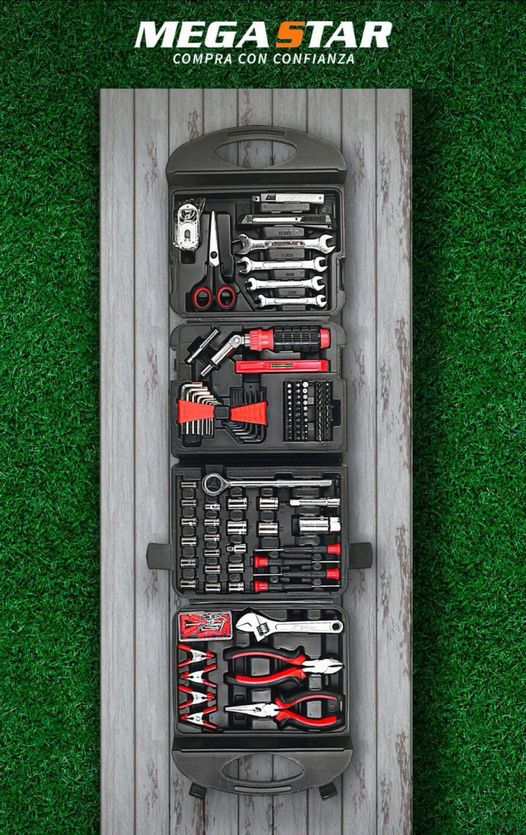 🛠️ ¡Descubre el kit Mega Star YM777 de 189 piezas! Perfecto para quienes buscan un conjunto completo de herramientas para todas sus reparaciones y proyectos de bricolaje.🔍 Este kit incluye una variedad esencial de herramientas, desde llaves y destornilladores hasta alicates, todo cuidadosamente organizado en un maletín robusto. Cada pieza ha sido diseñada para ofrecer durabilidad y funcionalidad, asegurando que siempre tengas la herramienta adecuada a mano.💪 Con un diseño ergonómico, este kit es ideal tanto para principiantes como para expertos. Ya sea que necesites hacer reparaciones en casa o en el trabajo, su tamaño compacto te permitirá llevarlo a cualquier lugar con facilidad.🚀 ¡No esperes más! Hazte con tu kit Mega Star YM777 hoy y transforma tus proyectos en un juego de niños. Prepárate para cualquier desafío de reparación y mejora en tu hogar. JUEGO DE HERRAMIENTAS DE 189 PIEZASDescripción:4 piezas de abrazaderas1 pieza de alicate de punta larga de 6"1 pieza de alicate de corte diagonal de 6"1 pieza llave inglesa ajustable de 6"70 piezas de clavos pequeños en una caja de plástico1 mango de carraca 3/84 piezas de destornilladores de precisión1 pieza de barra de extensión de 3/81 pieza de bujía1 pieza de adaptador14 piezas 1/4 dados de 6-7-8-9-10-11-12-13mm,5/16-11/32-3/8-7/16-15/32-1/24 piezas 3/8 dados de 14-15 mm, 5/8-9/1616 llaves hexagonales50 brocas de 25 mm1 pieza de nivel de 5"1 barra de extensión de broca de 60 mm1 soporte para puntas de trinquete1 tijera 5.51 abrebotellas4 llaves inglesas 6-7, 8-9 ,10-11,12-131 cuchillo10 hojas de cuchillo1 funda de soplado Algunas especificaciones destacadas:Materiales: Las herramientas están fabricadas en acero al carbono y acero inoxidable, garantizando durabilidad y resistencia.Contenido: Incluye una variedad de llaves, destornilladores, alicates, y accesorios que permiten realizar múltiples tareas.Presentación: Viene en un maletín compacto, facilitando su transporte y almacenamiento.Dimensiones: Aunque las dimensiones exactas del kit no siempre se especifican, generalmente es lo suficientemente compacto para ser manejado fácilmente.Peso: Aproximadamente 3.5 kg, lo que lo hace relativamente ligero para un kit de herramientas tan completo.Este kit es una opción excelente si buscas un conjunto completo para proyectos de mantenimiento en el hogar o en el taller.
